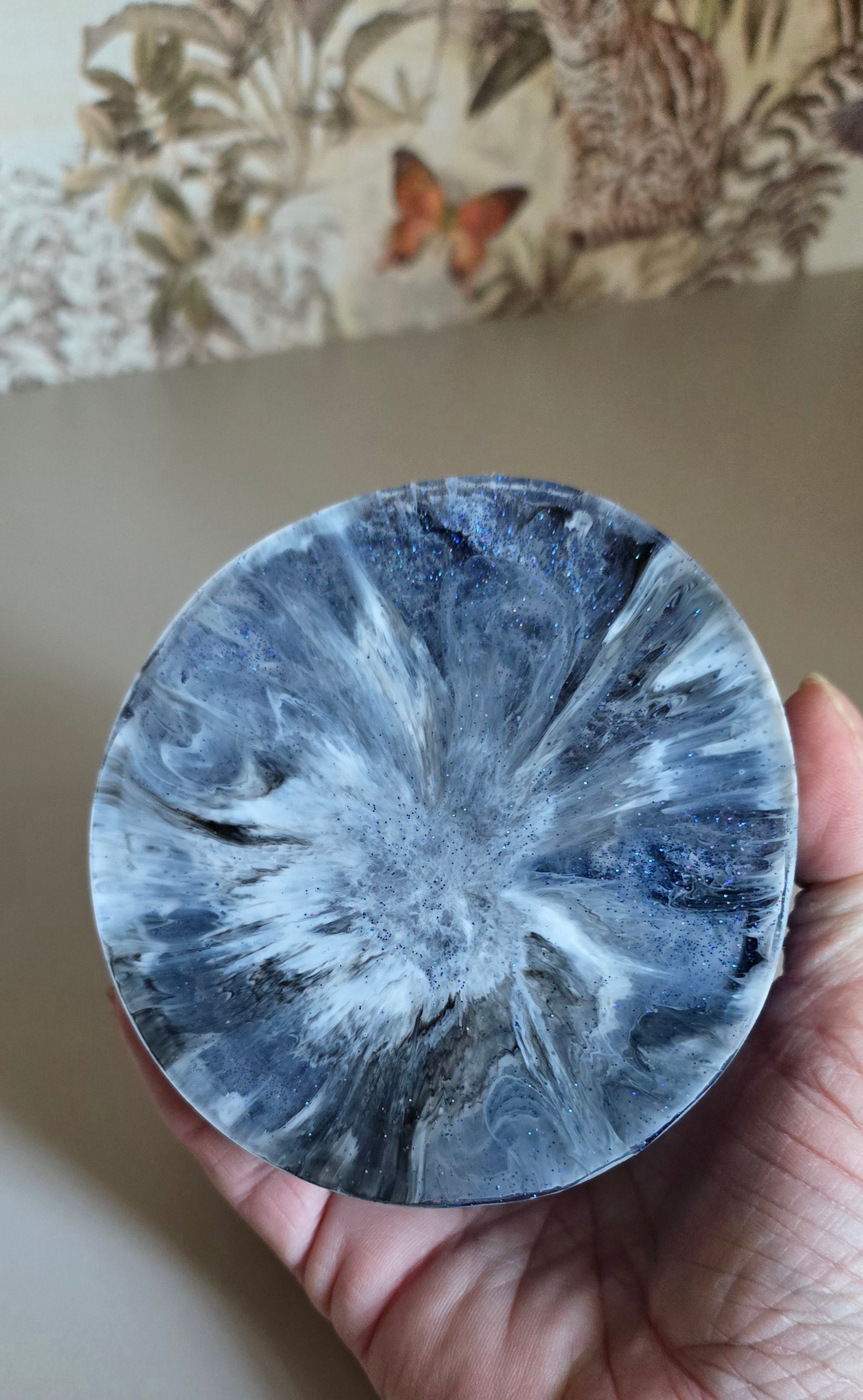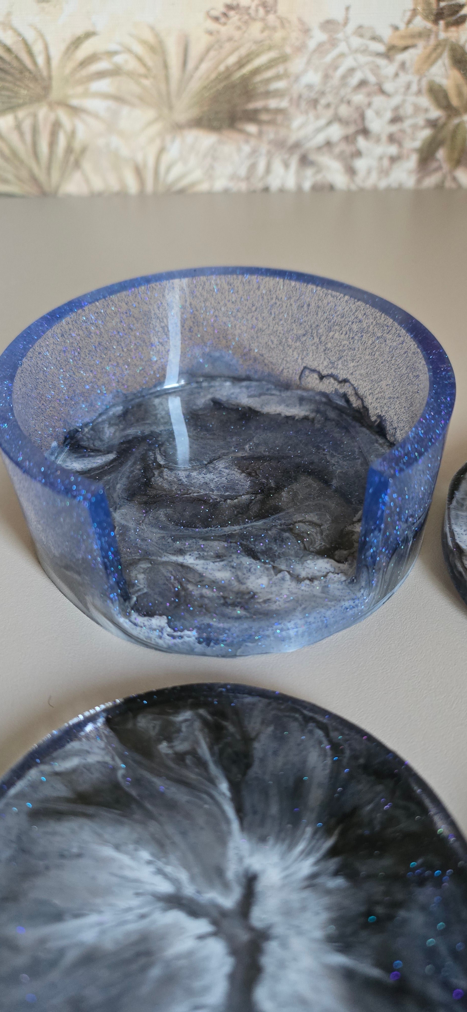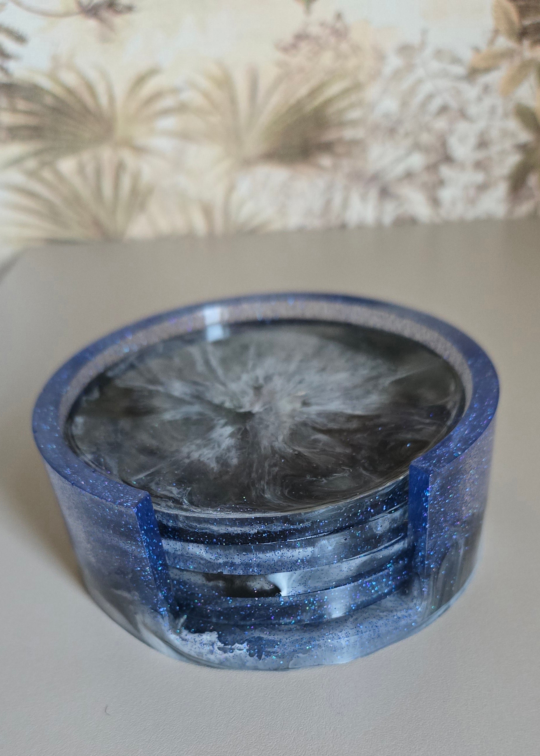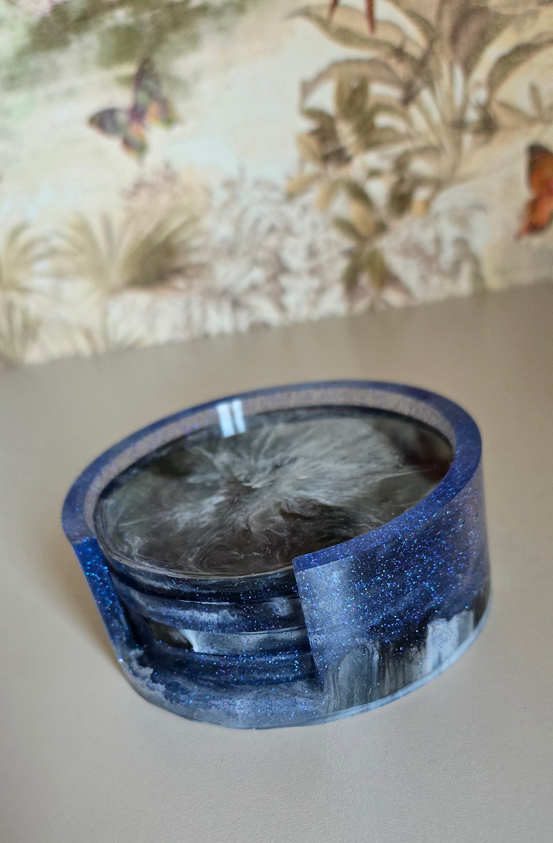 Set of 4 coasters in a caddy. Any style, colour...glitter, opaque, oil.